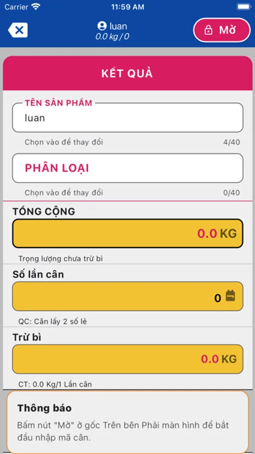 - Ứng dụng nhận dữ liệu cân điện tử thông qua Bluetooth BLE.