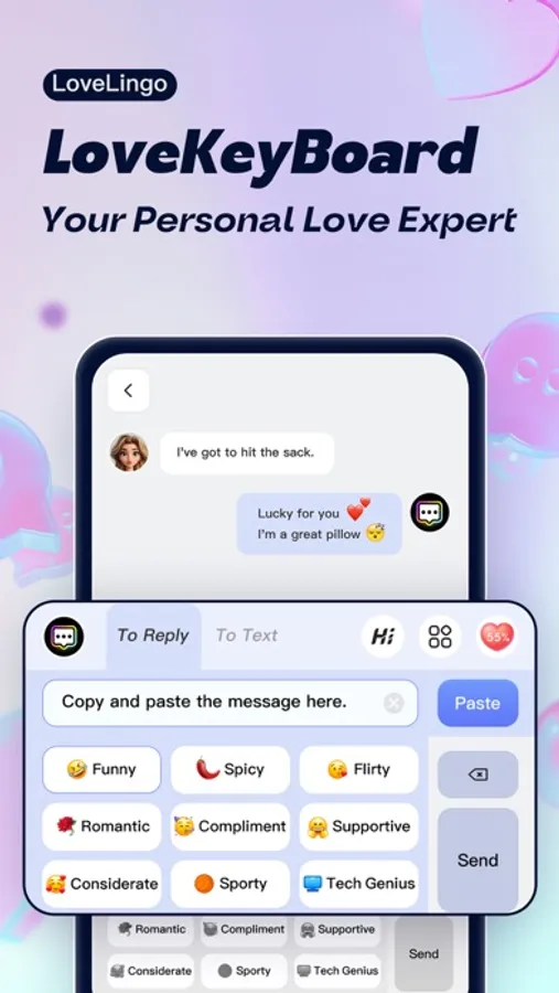 1. LoveLingo KeyboardLost for words? With our keyboard, simply paste what they sent you and let LoveLingo craft the perfect response. One tap, and you're a master of flirting.