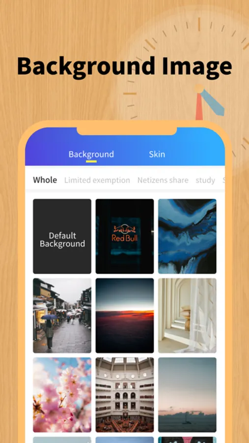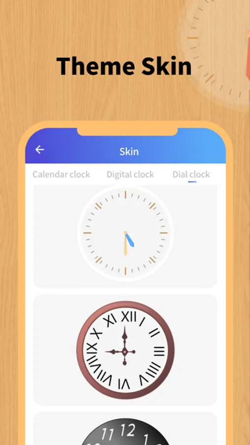 Multiple themes for free customization: different clocks, custom background images, switching between multiple clock backgrounds