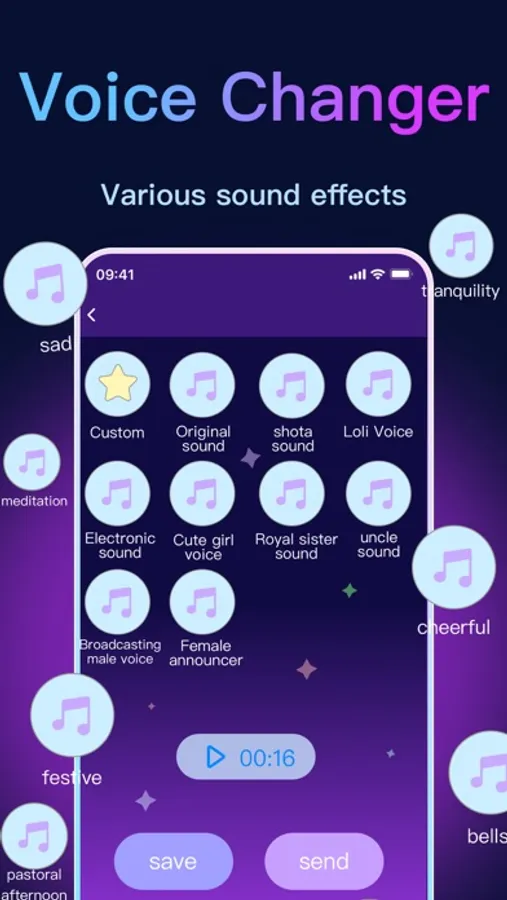 You can choose to make your voice like a female voice, male voice, electronic music, old man's voice or other sound effects.