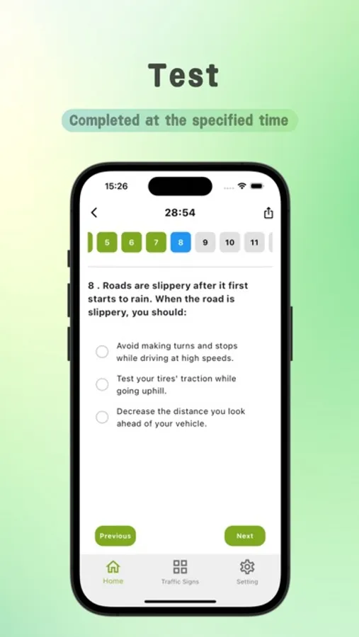2. More than 8,000 Practice Questions: Gain access to more than 8,000 high-quality questions, covering key topics such as traffic laws, road signs, and driving safety. Whether you're preparing for a DMV practice test or a state-specific learner’s permit exam, our questions are designed to help you succeed.