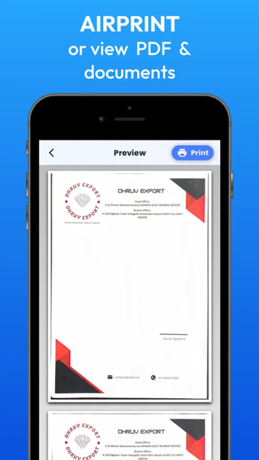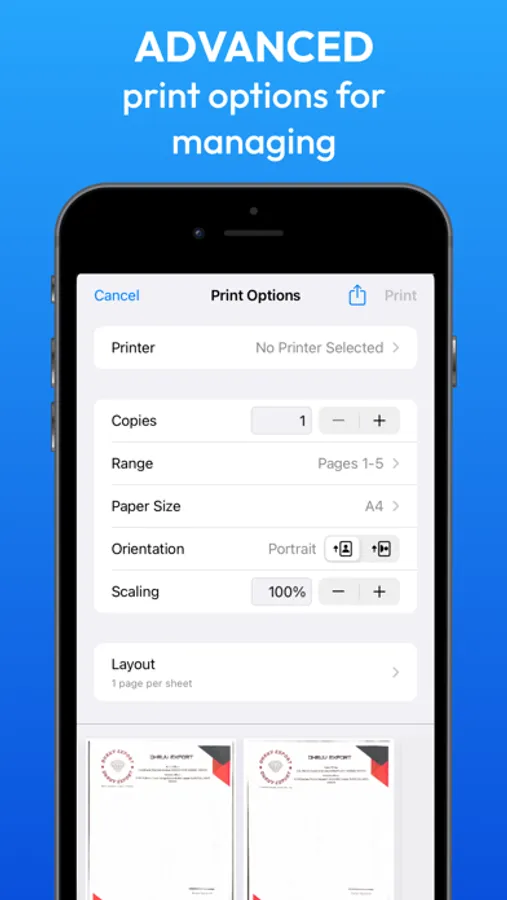 • Share documents: Easily share scanned documents via email, Airdrop, or messaging apps after you scan them using the smart printer.