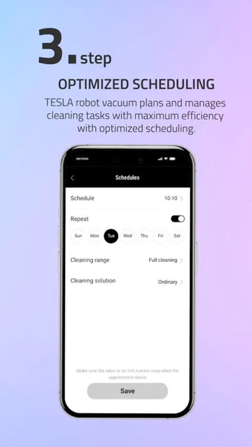 Set multiple schedules from hourly to daily to weekly, hitting different rooms with each one. You can clean the kitchen after launch and even the whole house when everyone's gone out.
