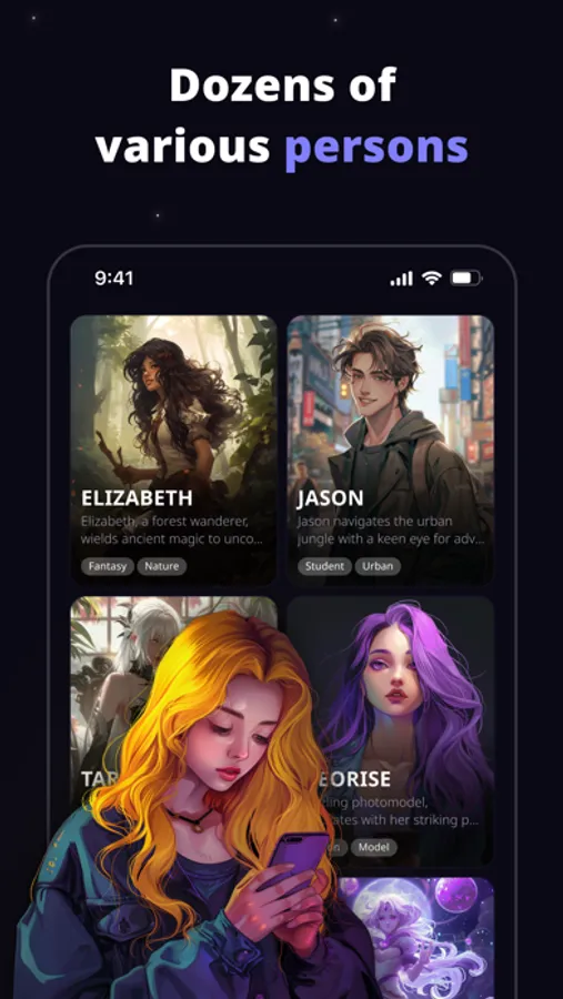 Immerse yourself in the world of artificial intelligence with Assistify AI Characters - This is your personal companion based on AI, in which you can communicate with a variety of characters from different universes such as anime, movies, games and original characters that you will not find anywhere else, you can communicate with them on a variety of topics at any time. With Assistify, you will experience the most positive emotions from interacting with AI characters.