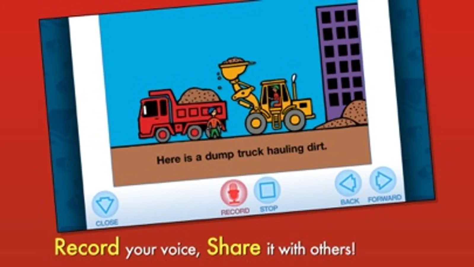Dive into 4 exciting Byron Barton interactive book apps for new readers! Explore pictures, learn new vocabulary, and personalize the story with your own narration. Enjoy Planes, Boats, Trains, and Trucks, all in one convenient place.