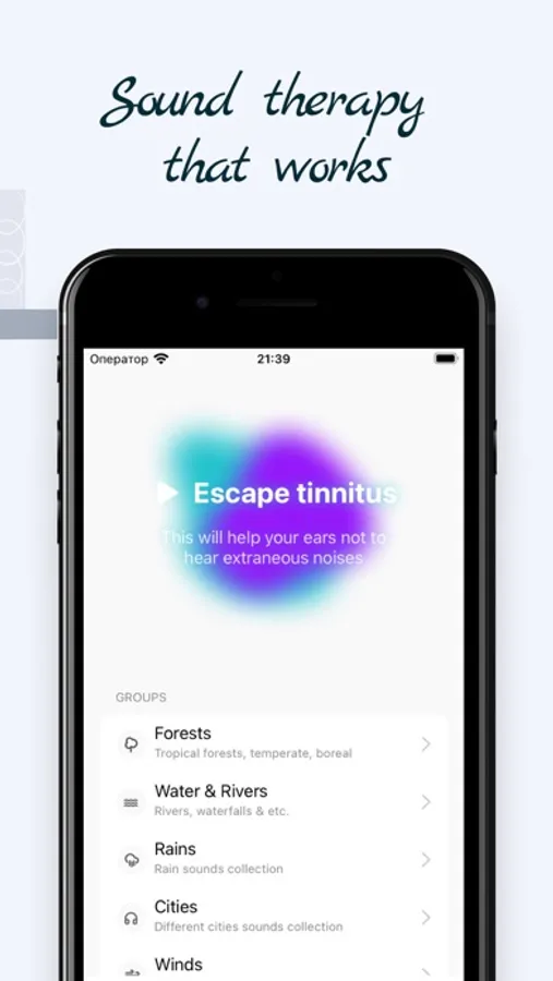 Immerse yourself in a world of peace and harmony with our unique app that helps fight tinnitus and insomnia. We offer you the sounds of nature to create the perfect atmosphere for relaxation, sleep and concentration.