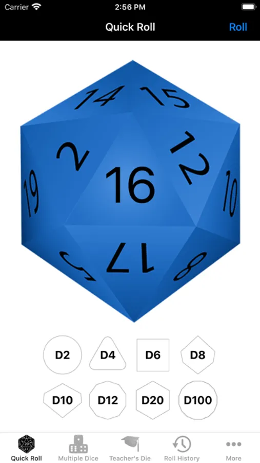 Simply pick your dice, and you have an instant result. Ideal for Dungeons & Dragons, Quick Roll offers the following eight dice; D2, D4, D6, D8, D10, D12, D20 and D100.