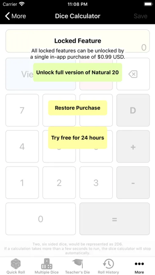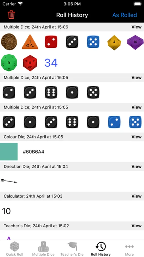 Natural 20 keeps track of all your rolls, so you can prove you actually rolled that 20! The dice stored in your history can be easily re-rolled and filtered. You can move the dice around the screen, and it will remember your order.