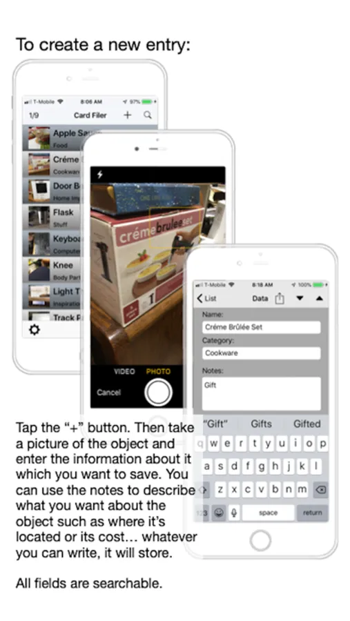 If you've tried other inventory apps and found them to be cumbersome and overloaded with bells and whistles, more suitable for a business than the homeowner or hobbyist? If the answer to any of these questions is “yes”, then CardFiler is definitely for you. This app lends itself to virtually any situation since there are no predetermined fields requiring a long set-up and learning curve and no complicated instructions to remember. You, not the app, decide how you want to keep track of your items. Best of all, it’s super fast and super simple so you can download the app and enter your first item a few seconds later!