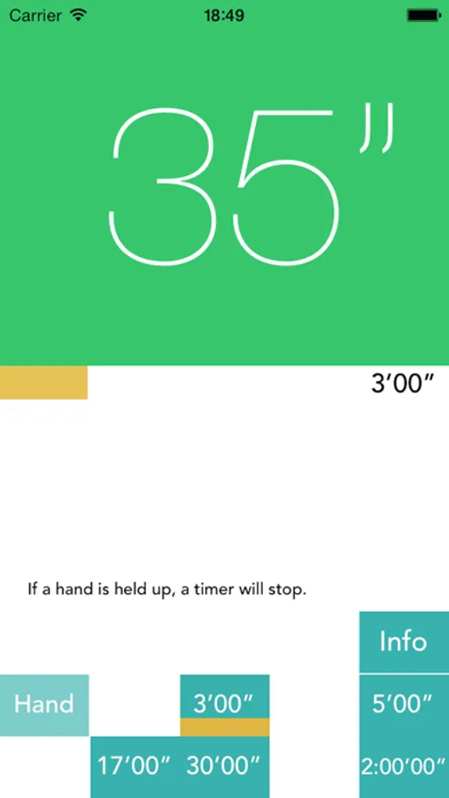 When starting an application, it is a timer which can perform a setup and stop of time by holding up a hand.