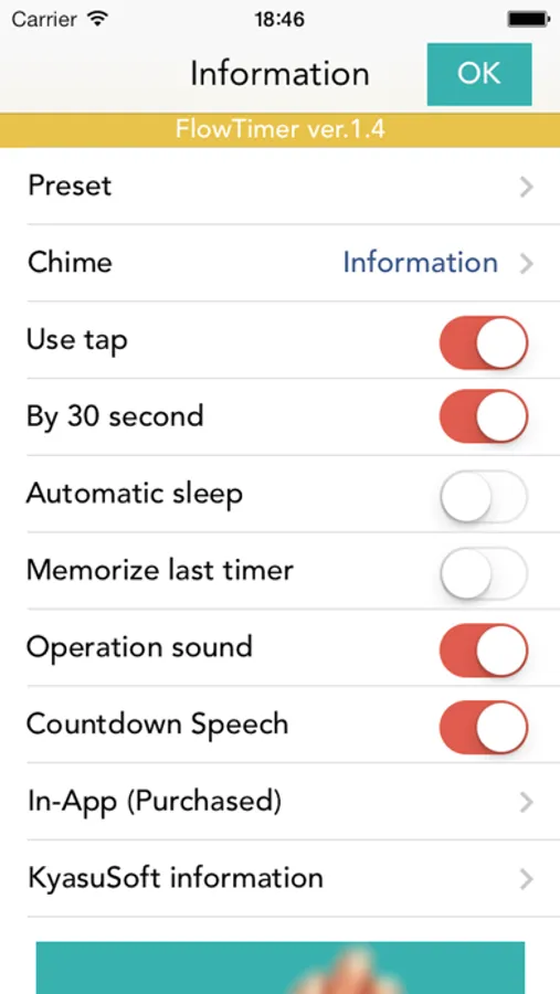 - There are four presets (eight by add-on) which sets timer time beforehand.