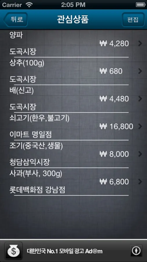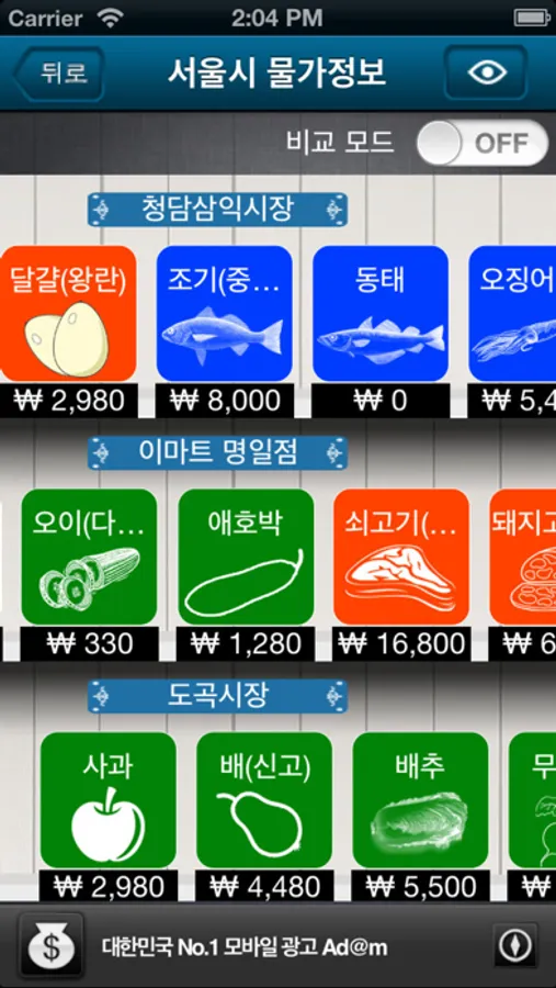 - 여러 마트/시장 가격 비교하기 모드 제공