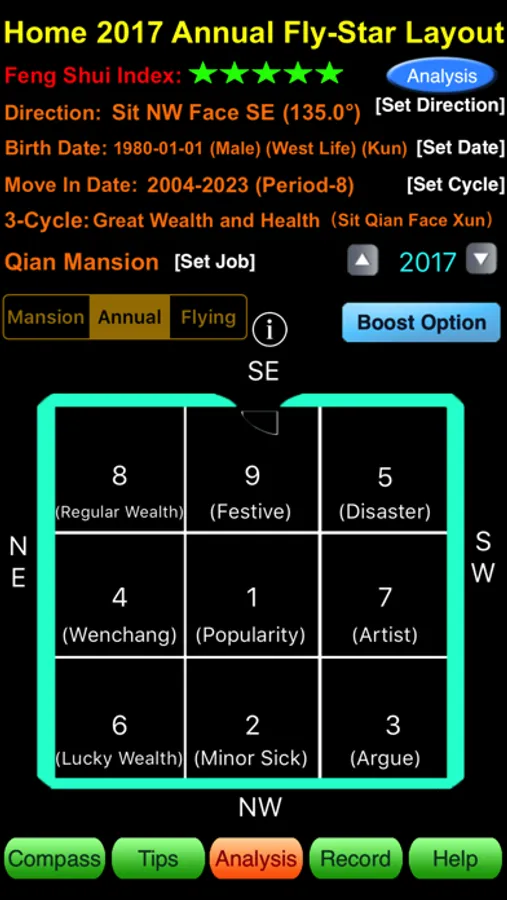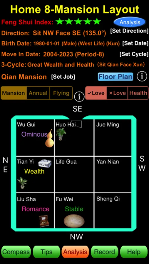 The Feng Shui layout provided by this software is for reference only, the contents and procedures may be inadequate, we do not guarantee the accuracy and reliability of the information provided by this software, and we do not take any responsibility because of the inaccuracies information or any loss or damage caused by the information provided by this software. The public should also understand that the Feng Shui theory is not an accurate science; you are the master of your fate.
