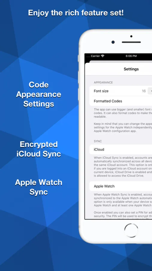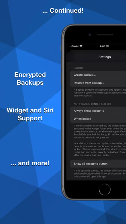 - Import/Export encrypted accounts using AirDrop, iCloud, Dropbox, Mail, ...