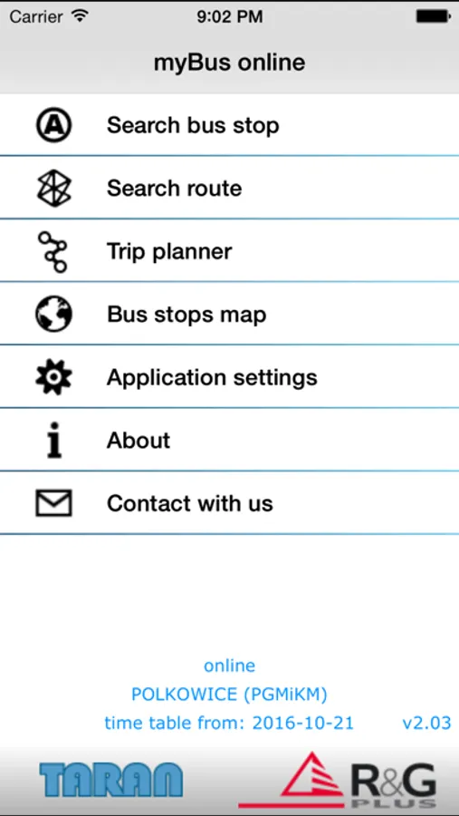 * Często pytacie czy moglibyśmy dodać kolejne miasta, zapraszamy do przeczytania odpowiedzi na naszej stronie: http://www.taran.com.pl/mybusonline/?pl/faq