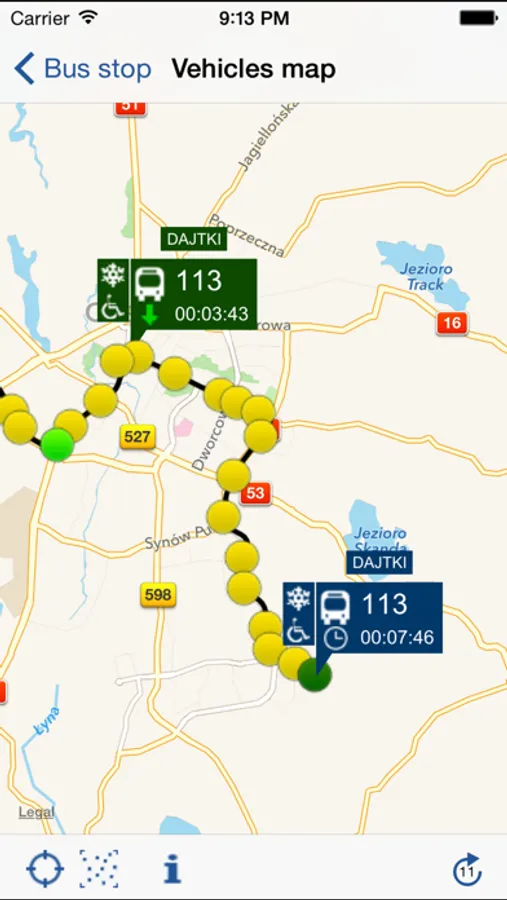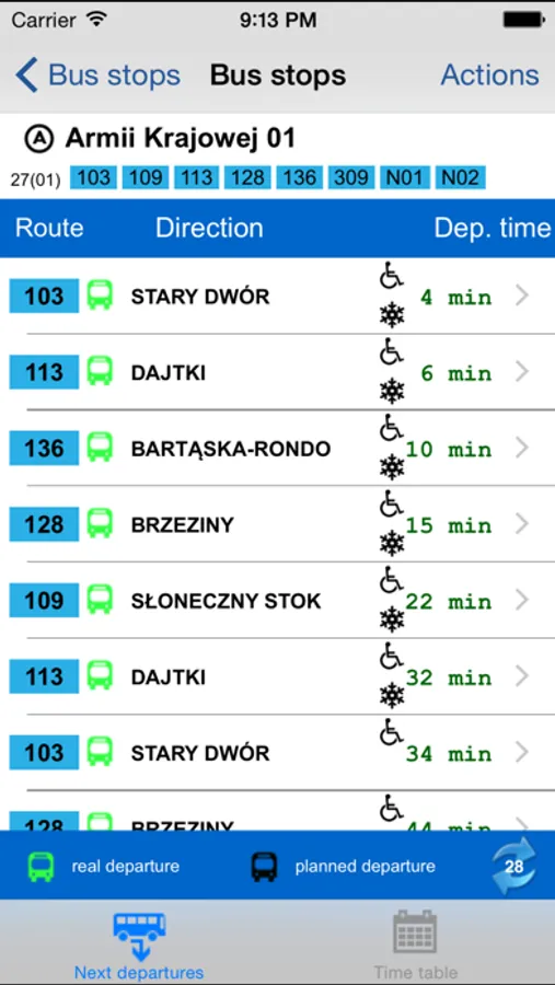 Oprócz tradycyjnego rozkładu jazdy, czyli tzw. tabliczki przystankowej, aplikacja potrafi wyświetlać najbliższe odjazdy w formie tzw. tablicy najbliższych odjazdów, na podstawie danych uzyskanych ze śledzenia pojazdów przez system GPS. Jest to wersja zwana on-line. Dzięki temu uzyskujemy znacznie dokładniejszą godzinę pojawienia się pojazdu na przystanku, uwzględniającą nieprzewidziane opóźnienia, czy przyspieszenia kursów. Jest to obrazowanie aktualnego stanu komunikacji, a nie zaplanowanego w rozkładzie jazdy.