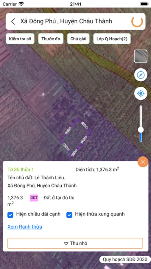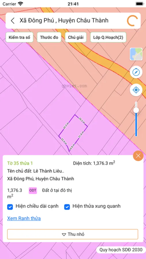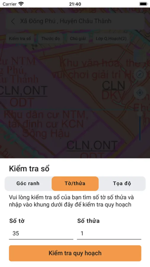 - Tra cứu thông tin quy hoạch theo số tờ - số thửa của sổ đỏ.