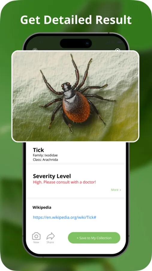 With our cutting-edge technology, you can easily identify bug bites by picture. Just upload a clear image of the bite, and our app will do the rest. It's that simple! One of the Premium subscription plans described below is required for getting the detailed identification result.