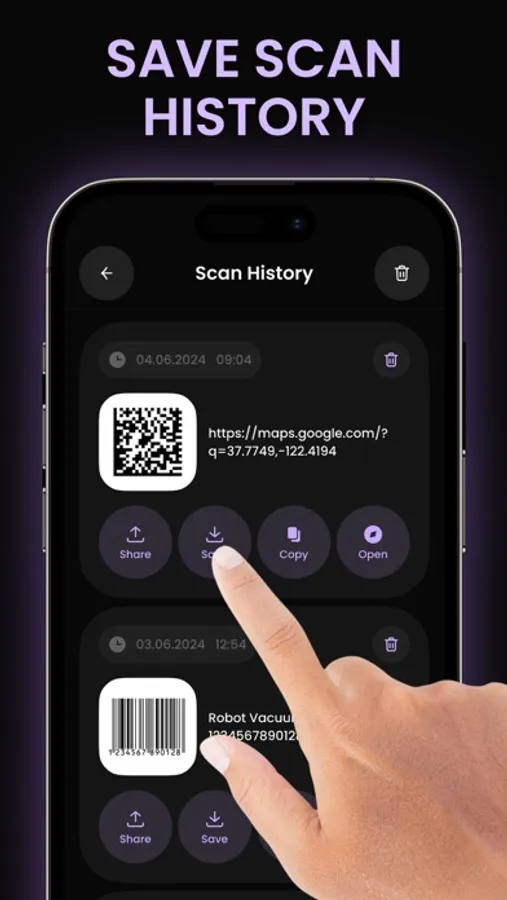 1) Seamless Scanning: Instantly scan all types of QR codes and barcodes.