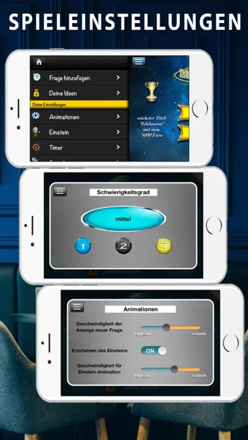 Das Spiel hat drei Schwierigkeitsgrade: leicht, mittel und schwer. Ein virtueller Millionär pro Spiel kannst du allerdings nur im Schwierigkeitsgrad "schwer" werden.
