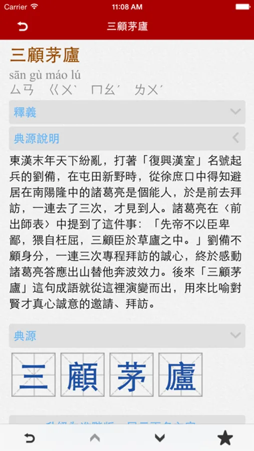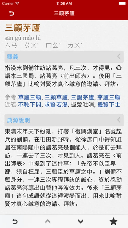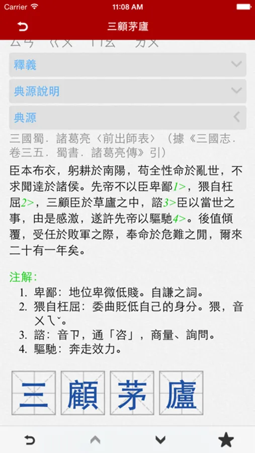 7. 可以升級到進階版,進階版含有典源說明、典源、書證、辨識、用法等更多內容。