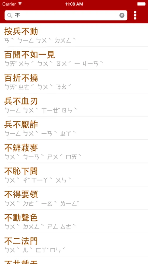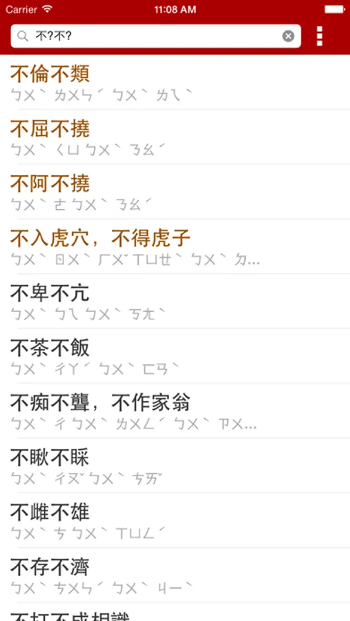 1. 搜尋「不」,會找出所有包含不字的詞目。