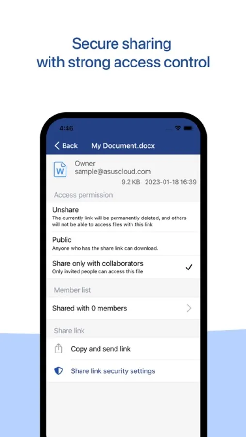 ASUS OmniStor enterprise storage cloud user iOS mobile device application, can log in cloud space from mobile devices, allowing you to upload, backup and access all files from any device, and can also share with other users to view, edit files or folders.