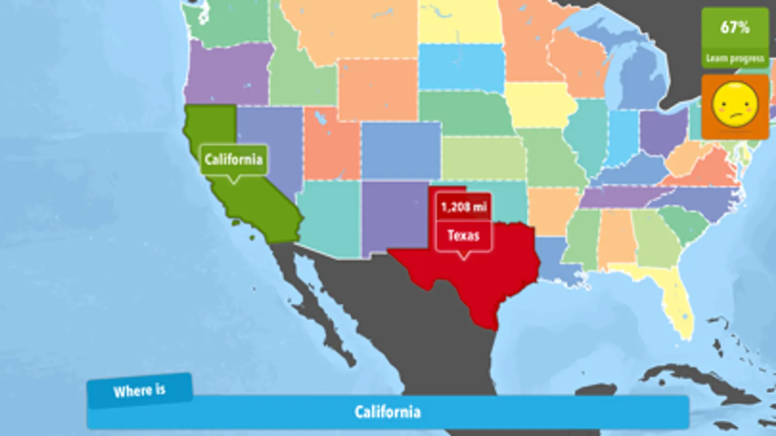 Learn countries, states, capitals and landmarks with this geography learning game. With over 6 million downloads, it's one of top learning apps for iPhone & iPad.