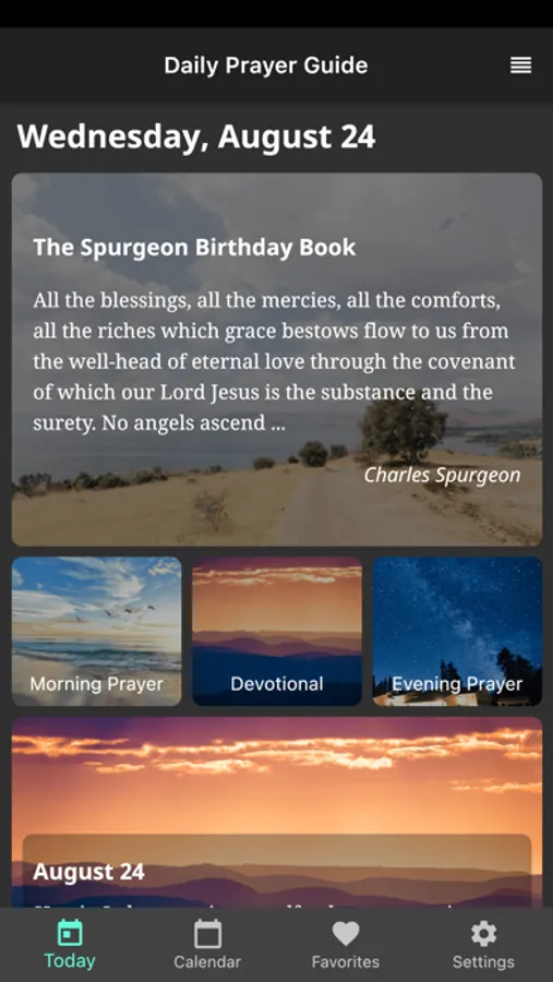 Daily Prayer is a daily devotional and prayer guide based on Leaves of Life; a compilation of bible verses, prayer, poems, and quotations from famous authors, writers and poets including Ralph Waldo Emerson, John Ruskin, Robert Browning, William Shakespeare, Alfred Tennyson, Goethe, James Russell Lowell, Henry W. Longfellow, Thomas Carlyle, Arthur C. Benson and others compiled by Margaret Bird Steinmetz.