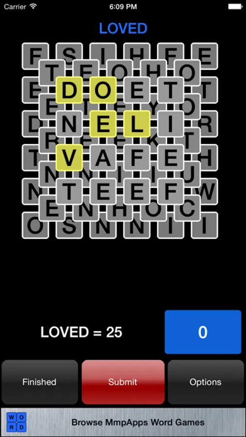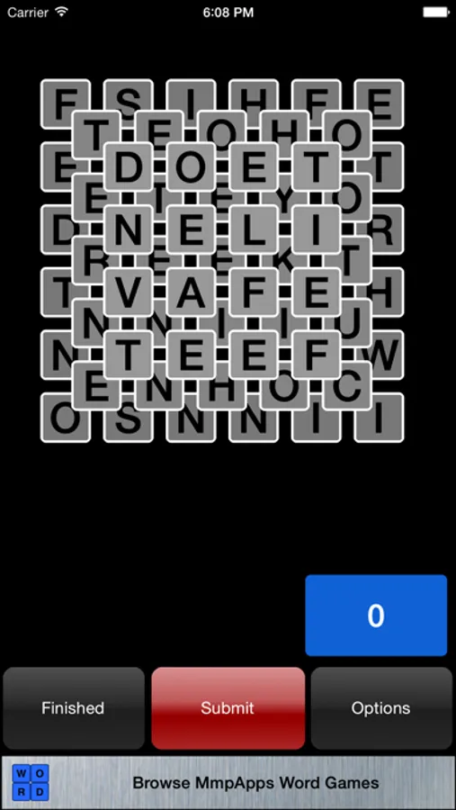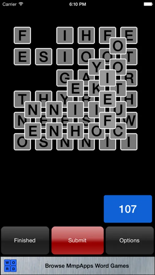 Starting with a pyramid of letters make the best words you can. After scoring a word the letters are removed from the pyramid revealing the letters underneath.
