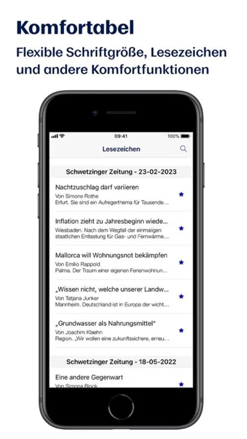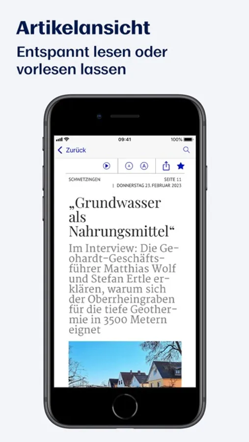 + Komfortable Nutzung: Schriftgröße anpassen, Artikel vorlesen lassen oder merken..