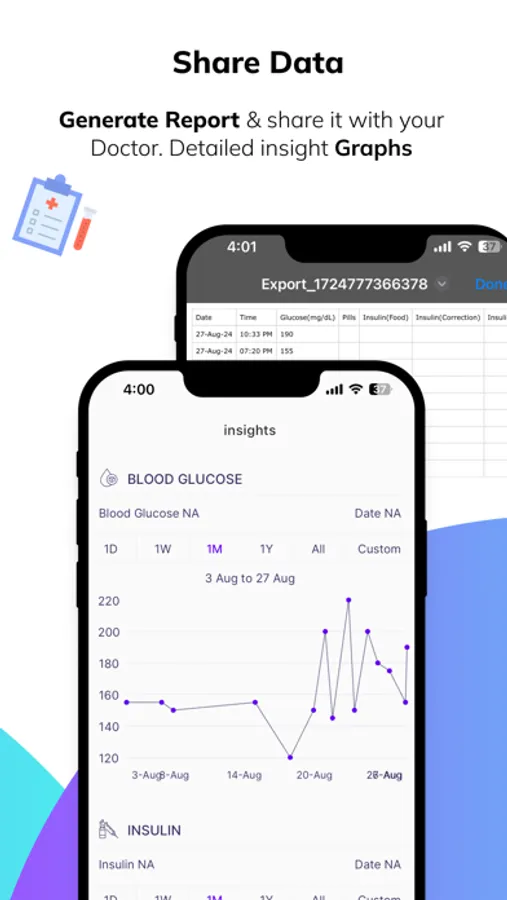 Health Trends & Insights: Visualize your blood sugar data with clear graphs and averages.