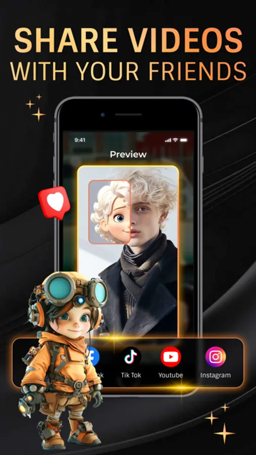 Immerse yourself in a vibrant world of animated possibilities where love, mystery, and endless entertainment await. My Character: Cartoon Filter transforms your favorite cartoon characters into lively, playful realities.