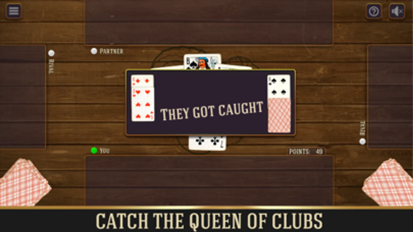 The game consists of rounds, the goal of which is to collect the maximum number of points. A team that collects less than 60 points in a round receives two losing points. If a team has scored less than 30 points per round, then it receives 4 losing points. After all the cards in the round have been played, tricks are counted and losing points are awarded, after which the next round begins.