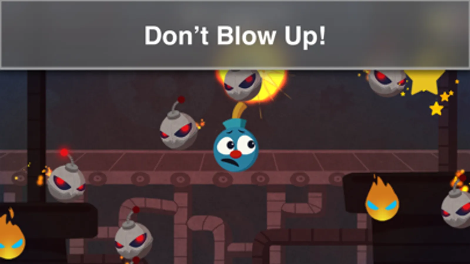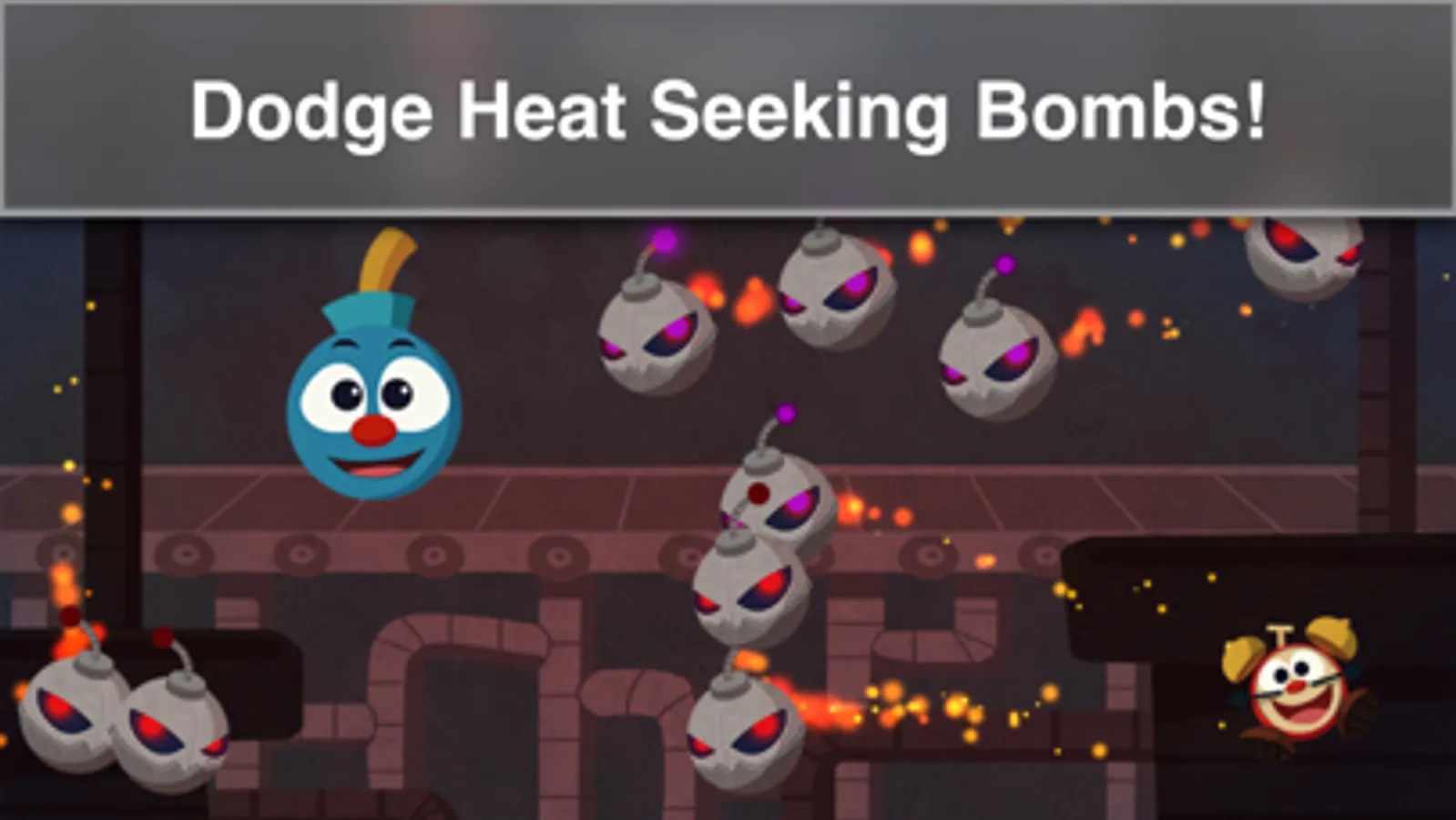 A mad scientist flipped the switch at the bomb factory from good to evil. The steampunk bomb machine is creating evil bombs that are exploding everywhere! You need to help protect Bombee, the last friendly bomb from blowing up!