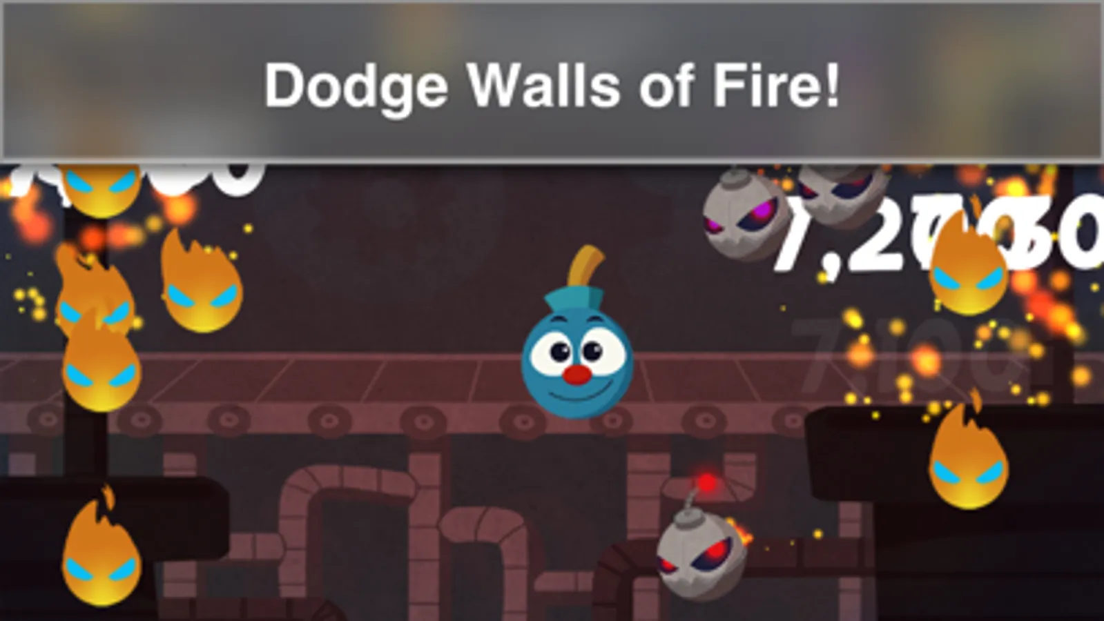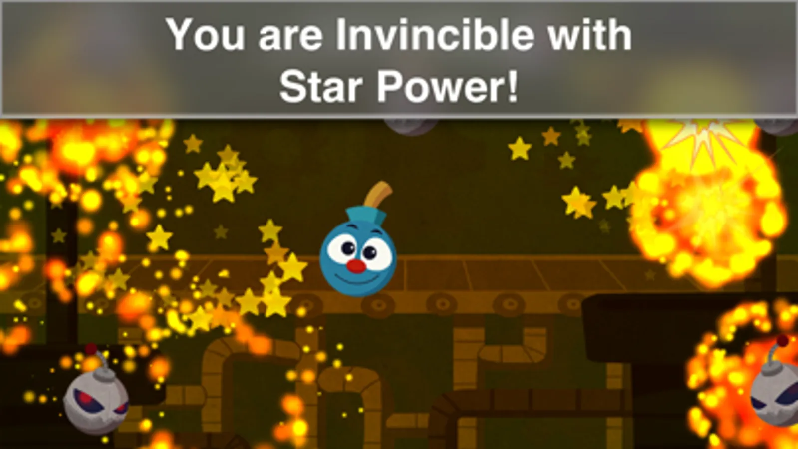 1. Use Star Power to become invincible (god mode!) and you'll be able to destroy and smash all of the bombs and fireballs for a limited time. Hint: use 2 or more fingers to clear the entire screen quickly!