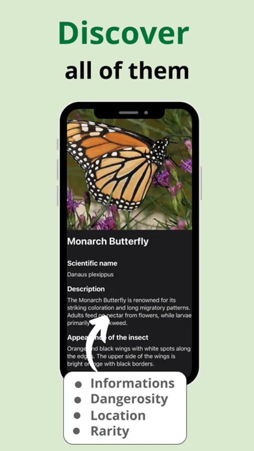 Just open the app and point your phone's camera at the insect to get all the information you need.