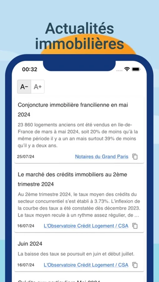 * Notifications lors de la mise à jour des taux, des actualités et des ventes DVF