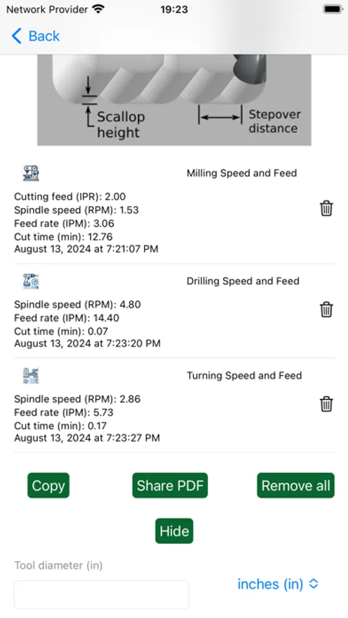 • Save & share — bookmark setups, copy results to CAM notes, or AirDrop to the operator.