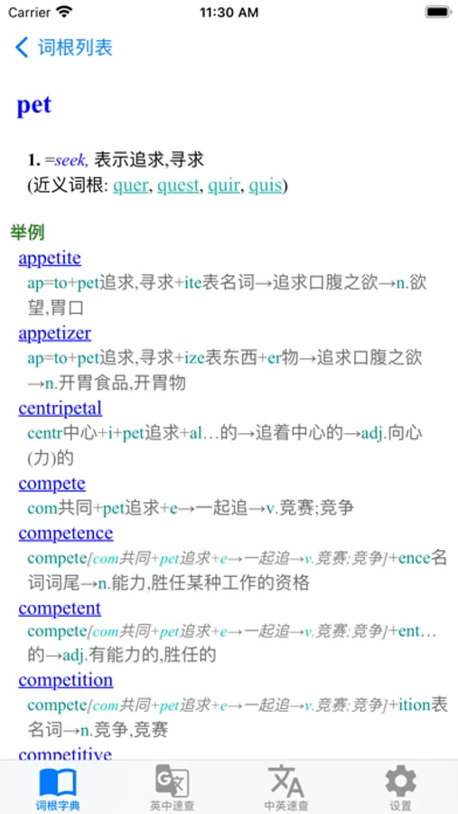 学习一门语言文字的最短最佳的途径,是掌握它的词根,亦即那些其它单词借以形成的原生词。