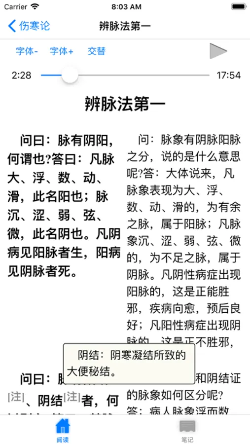 1、文白对照。文言文和白话文同屏显示,支持对照和交替排版,轻松读阅读中医著作。