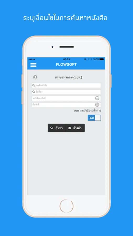 -การค้นหาหนังสือตามเลขที่หนังสือ ชื่อเรื่องและตามวันที่ หนังสือรอสั่งการ หนังสือรอลงนาม หนังสือเวียน
