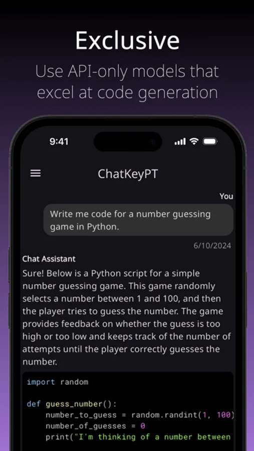 You get full access to models exclusive to APIs that excel at things like code generation.
