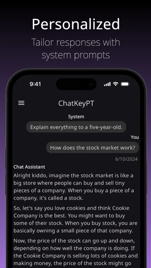 System prompts allow you to have greater control over your chat responses. Have everything explained to a five-year-old, or even hold a conversation in Shakespearean English.