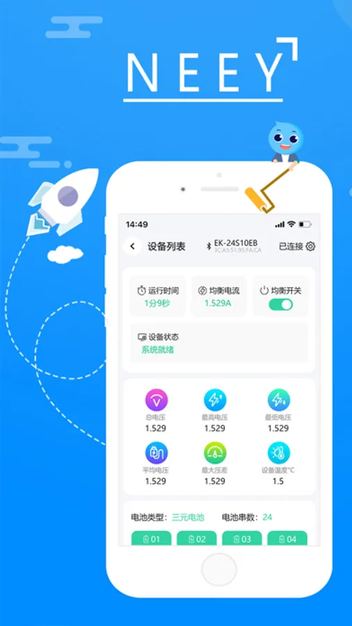 NEEY锂电池BMS,提供了一系列便捷的管理和控制功能,用户可以在APP上实现对锂电池BMS的实时监控、数据查询、参数设置等操作
