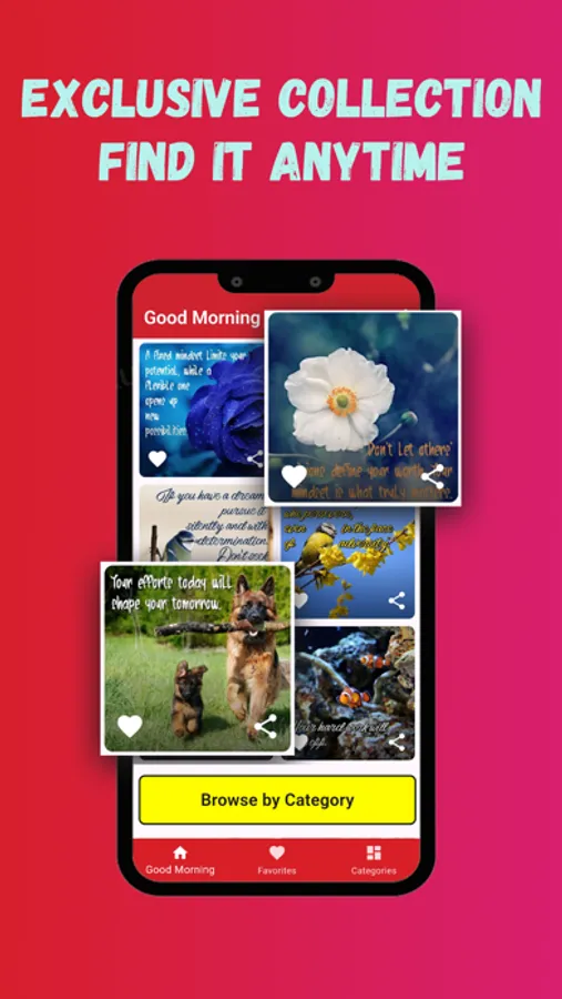 This app features a collection of 280 beautiful images organized into 17 different categories, ensuring you’ll find the ideal greeting for every occasion. Whether you’re looking for warm good morning messages, inspiring quotes, or romantic wishes, we have a diverse selection to choose from.