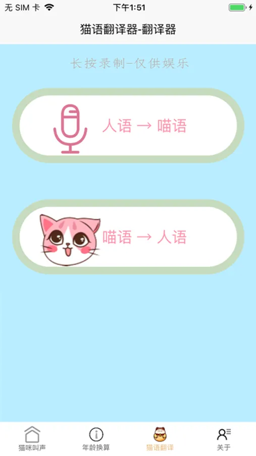 程序翻译语言仅供参考,并不提供真正的人类对猫翻译功能,娱乐为目的哦,欢迎使用。