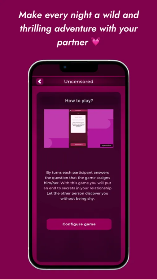 Remember, classic games like Never Have I Ever, Truth or Dare, Most Likely To, Strip Poker... are included but totally revamped for the love world, so you can play with your partner like never before. You’re about to experience a fiery night for free!