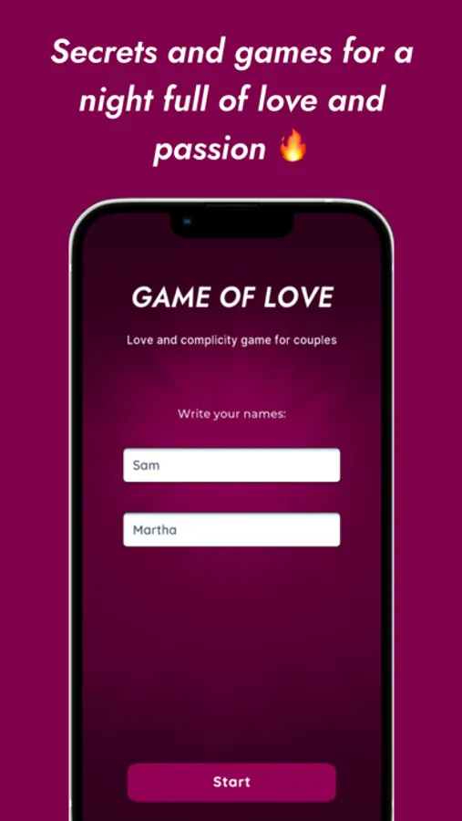 In Game of Love (couple's love games), you’ll find the spiciest and most extreme games with the hottest questions and challenges. If there were any unspoken secrets between you and your special someone, this game will take it to the next level.