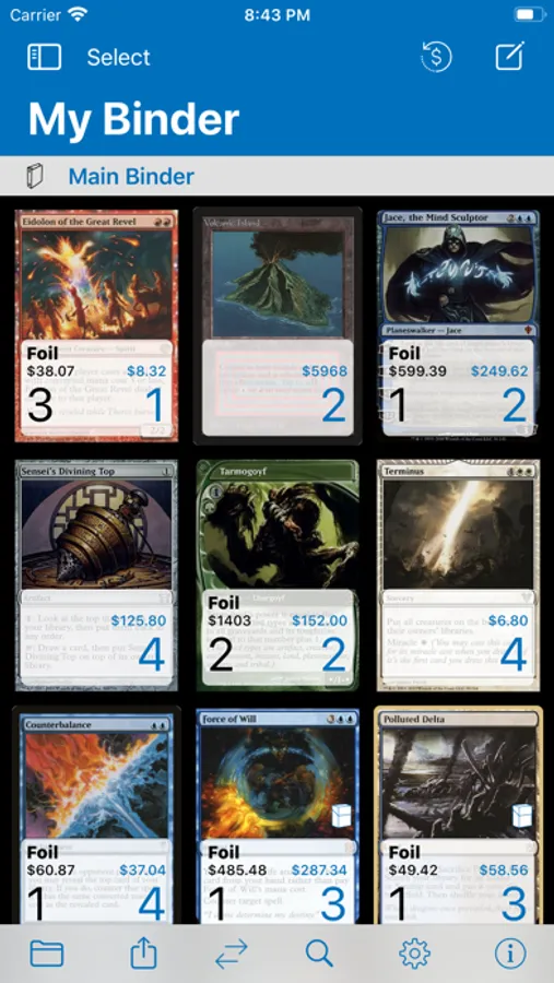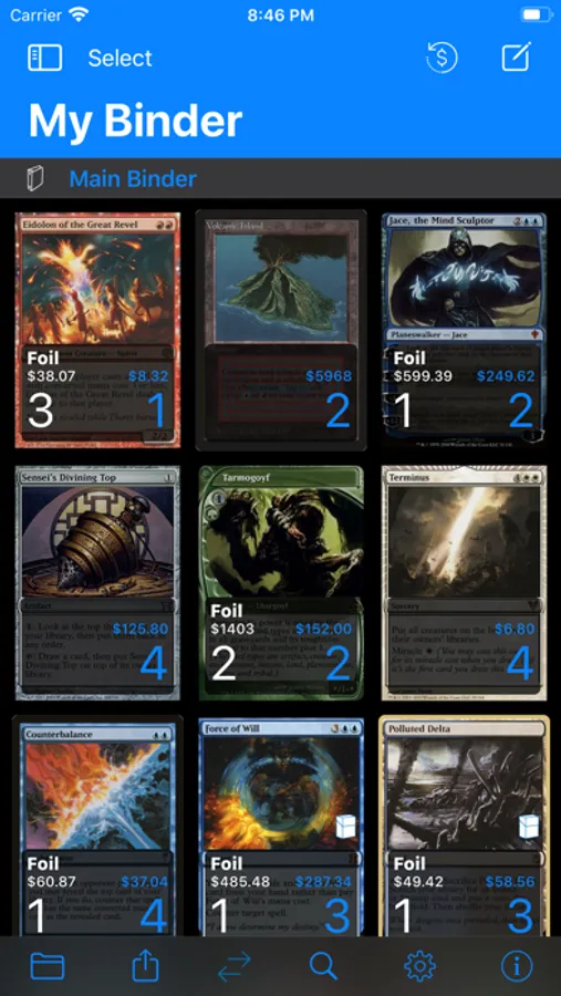 - With a single tap, get the stats on your binder - broken down by Foil, Regular, Rarity and Color